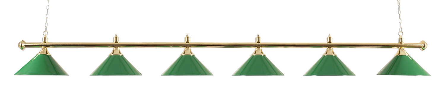Deze klassieke biljartlamp voor snooker en piramid is traditioneel vorm gegeven met messing en groene kappen, en is de finishing touch voor de inrichting van elke professionele zaal of club. Gebouwd op maximale duurzaamheid en voorzien van een witte coating aan de binnenkant voor optimale lichtreflectie naar de tafel. Let op: wij verkopen enkel lampen met CE en RoHS certificering! Een investering in veiligheid en zekerheid die uw bedrijf of huis zeker waard is.