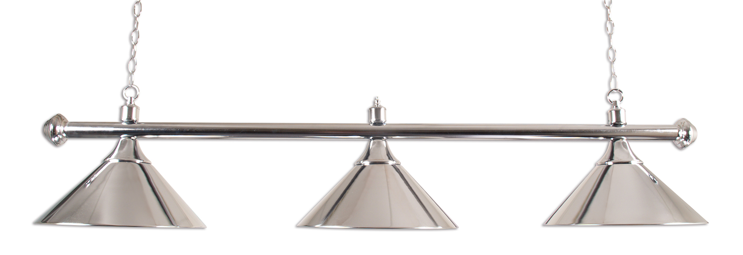 Buffalo chrome billiard lamp with 3 chrome shades 150cm