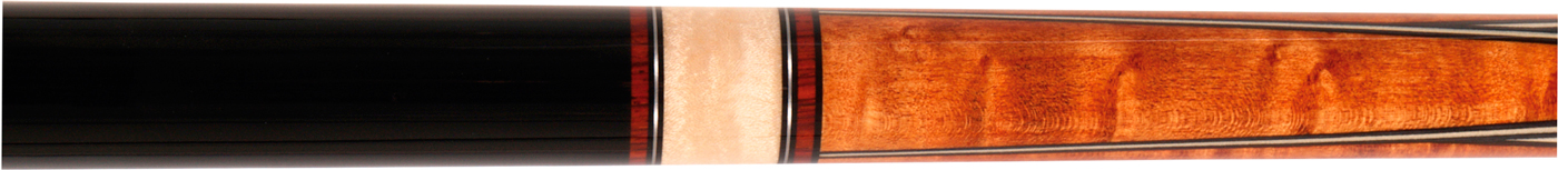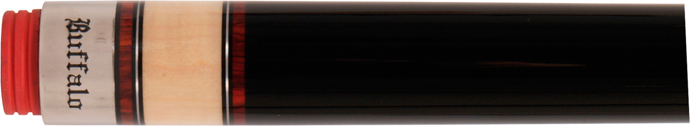 De nieuwe Buffalo Premium carambole serie is spectaculair mooi voor een spectaculair lage prijs! De Premium 1 heeft een ondereind van birds-eye esdoorn in deels koperkleurige en deels zwarte (greep) lak. Het ondereind is ingelegd met verweven vlammen van ebbenhout en blank fineer. De greep heeft aan weerszijden ingelegde ringen in verschillende diktes van naturel gelakt esdoorn, cocobolo en nikkel. Deze serie is voorzien van de enkelvoudige houten joint van Buffalo, die een relatief zachte stoot maakt en de speler dus veel controle en gevoel in zijn spel geeft.